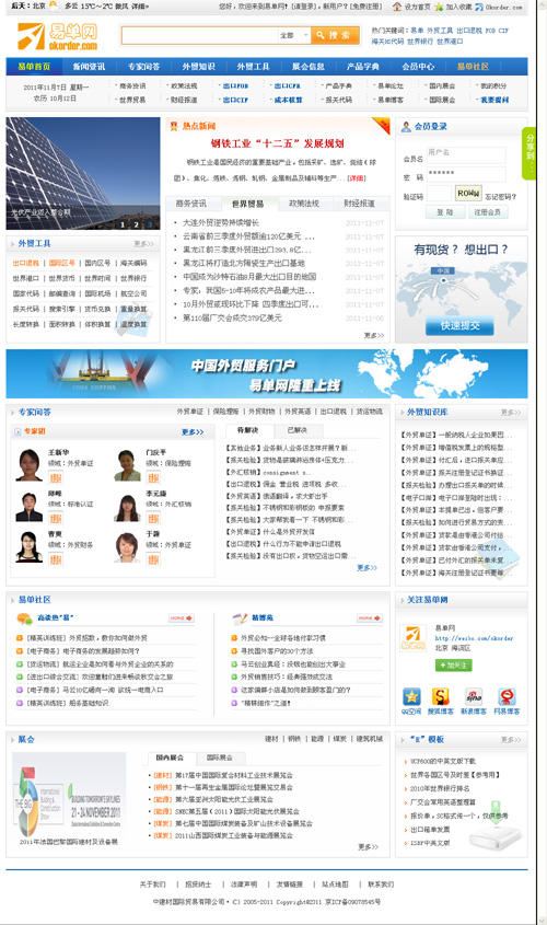 易单中国站(cn.okorder.com)经过全新改版,于11月2日正式投入运营,易单论坛(bbs.okorder.com)也同步上线。改版后的中国站内容更加丰富,特色更加鲜明,功能也更完善,集在线专家团、外贸知识、在线工具、资讯及社区于一体,旨在为海内外外贸人士提供专业的咨询和服务。