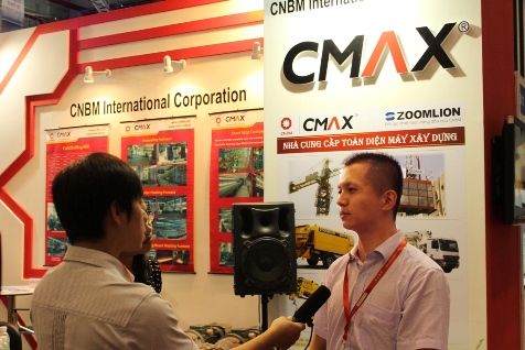展会开幕日,建筑机械事业部总经理陈瞻接受了越南胡志明市当地媒体-胡志明电视台(HTV)采访,向越南观众介绍公司和参展产品。