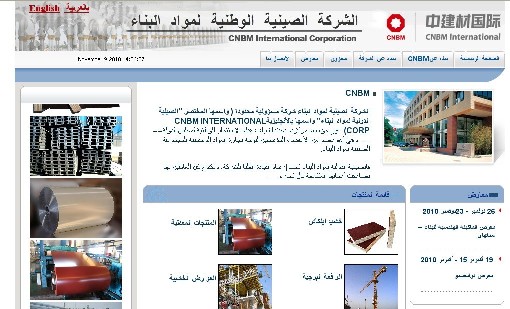2010年11月,中建材国际阿拉伯语版官方网站正式上线(www.cnbmuae.com),标志着公司已相继完成中文、英文、波斯语和阿拉伯语官网的建设,进一步推动了公司全球化和本土化战略的实施。