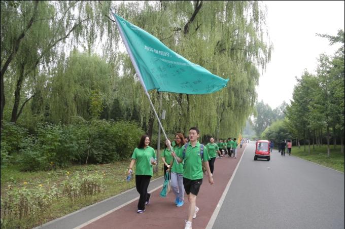 本次活动共有35名来自中建材国贸和中建材进出口公司大宗网的员工参加。活动开始前,大家分成六个小队,每队分别起了贴合环保主题的口号。在鲜艳的队旗的带领下,队员们开始了这场别具意义的徒步活动。为了让大家能更好地到深入到环保公益活动中去,组织者还专门为大家准备了垃圾袋,号召大家在徒步过程中捡起沿途中的垃圾,用微小的力量为环保做出一份实实在在的贡献。